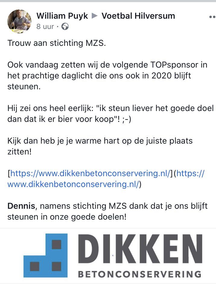 Dikken betonconservering is trotse sponsor van Stichting MZS / Hilversums elftal